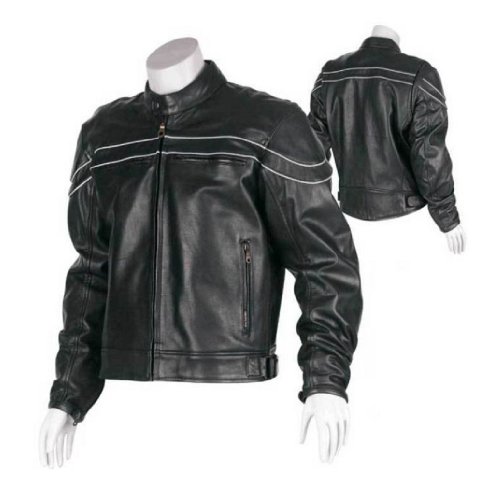 Redline® Men's Leather Motorcycle Jacket. Removable Thinsulate Liner. Silver Reflective Piping. Neck Warmer. M-88 Great Deals, Shop Online, Read