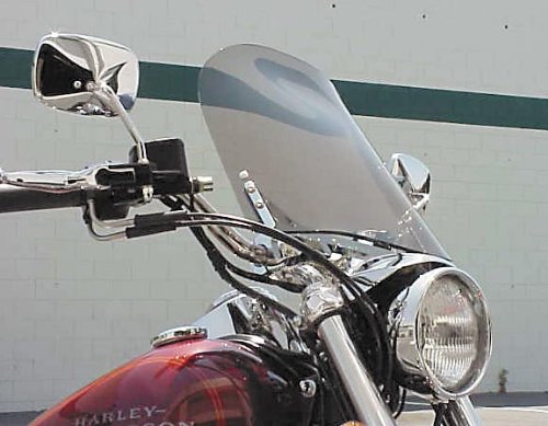 #Innovative cross-bar bracket holds the windscreen firmly in placeChrome-plated billet aluminum handlebar clamps grip the windshield securely in place without damaging the handlebarsExtra thick 5mm, hand molded acrylic windshieldMounting holes allow easy up and down adjustmentsDesigned to follow the bikes fork-line for the perfect look and fitFront flat surface, 2" side contours with integrated deflector creates low pressure wind flow diverting wind away from the chest and headQuick detachable billet hardware allows effortless installation and removal Easily detaches with 2 allen boltsAll items are sold individually unless specifically described otherwise in the product descriptionThis item fits the following models: 2007-2009 Harley Davidson FXDL Dyna Low Rider2006 Harley Davidson FXDLI Dyna Low Rider1999-2007 Harley Davidson FXST Softail Standard1999-2009 Harley Davidson FXSTB Night Train2001-2006 Harley Davidson FXSTBI Night Train2000-2007 Harley Davidson FXSTD Softail Deuce2001-2006 Harley Davidson FXSTDI Softail Deuce2001-2006 Harley Davidson FXSTI Softail Standard2004-2005 Harley Davidson VRSCB V-Rod1996-2003 Harley Davidson XL1200C Sportster 1200 Custom1999-2003 Harley Davidson XL883C Sportster 883 Custom2007-2009 Honda VT750C2 Shadow Spirit2001-2003 Honda VT750DC Shadow Spirit2005-2007 Honda VT750DC Shadow Spirit2001-2003 Indian Scout2001-2003 Indian Spirit2002-2003 Kawasaki VN1500P Vulcan 1500 Mean Streak2004-2008 Kawasaki VN1600B Vulcan 1600 Mean Streak2007-2010 Kawasaki VN900C Vulcan 900 Custom