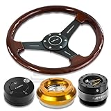 NRGSRK130HRG+200BK+101MB+015RBK, NRG Innovations 13" 330mm Deep Dish Style Wood Grain Black Spokes Racing Steering Wheel Combo with 6 Hole Short Hub Adapter with Gen 2.0 Black Quick Release with Matte Black Lock Hub Kit SRK-130H